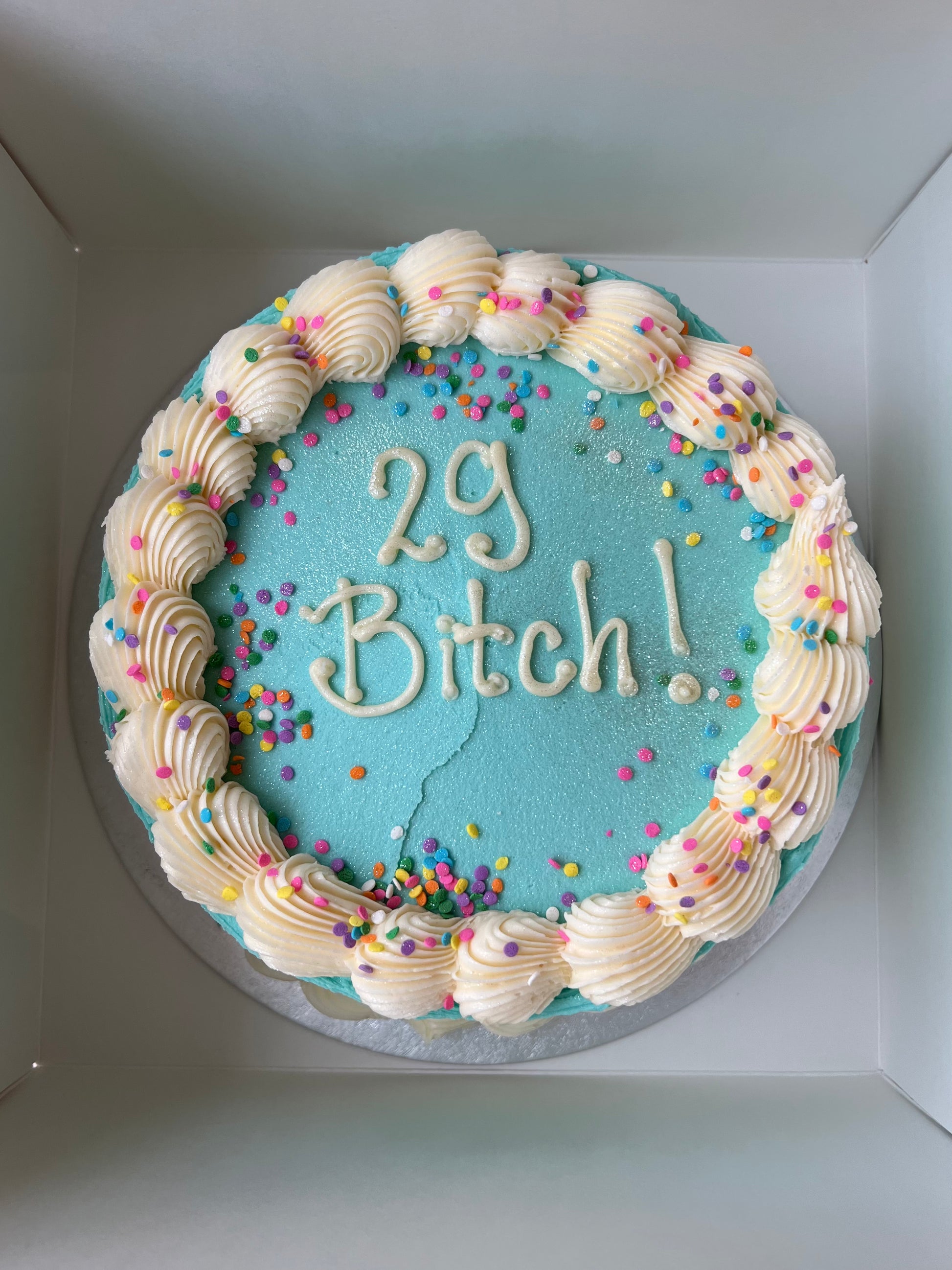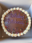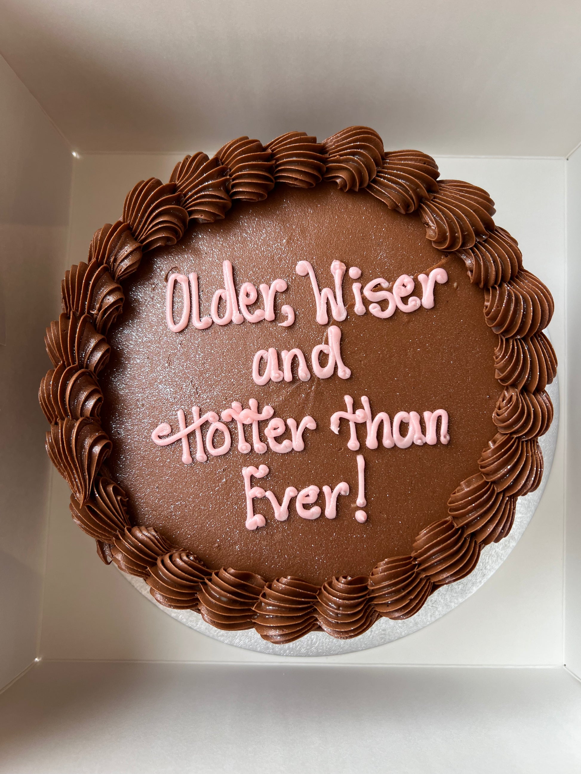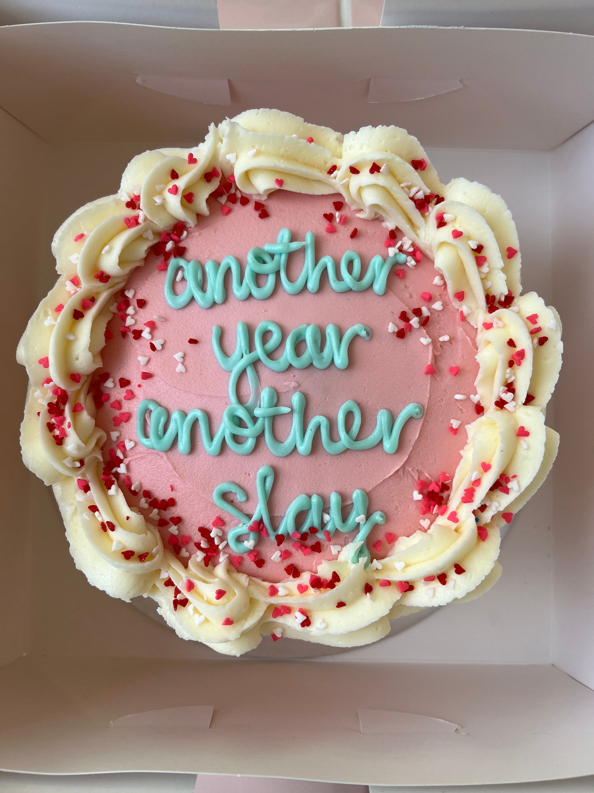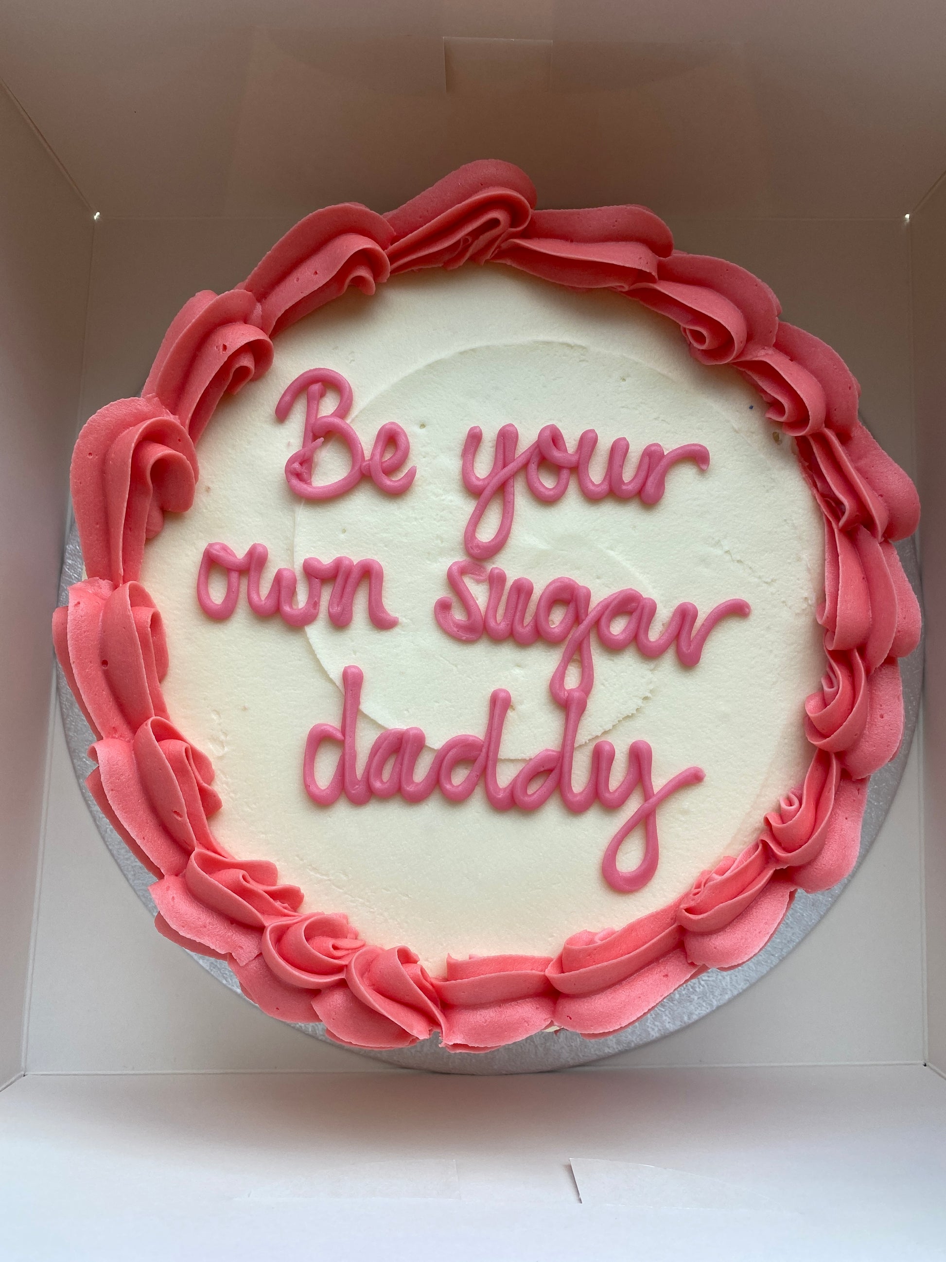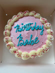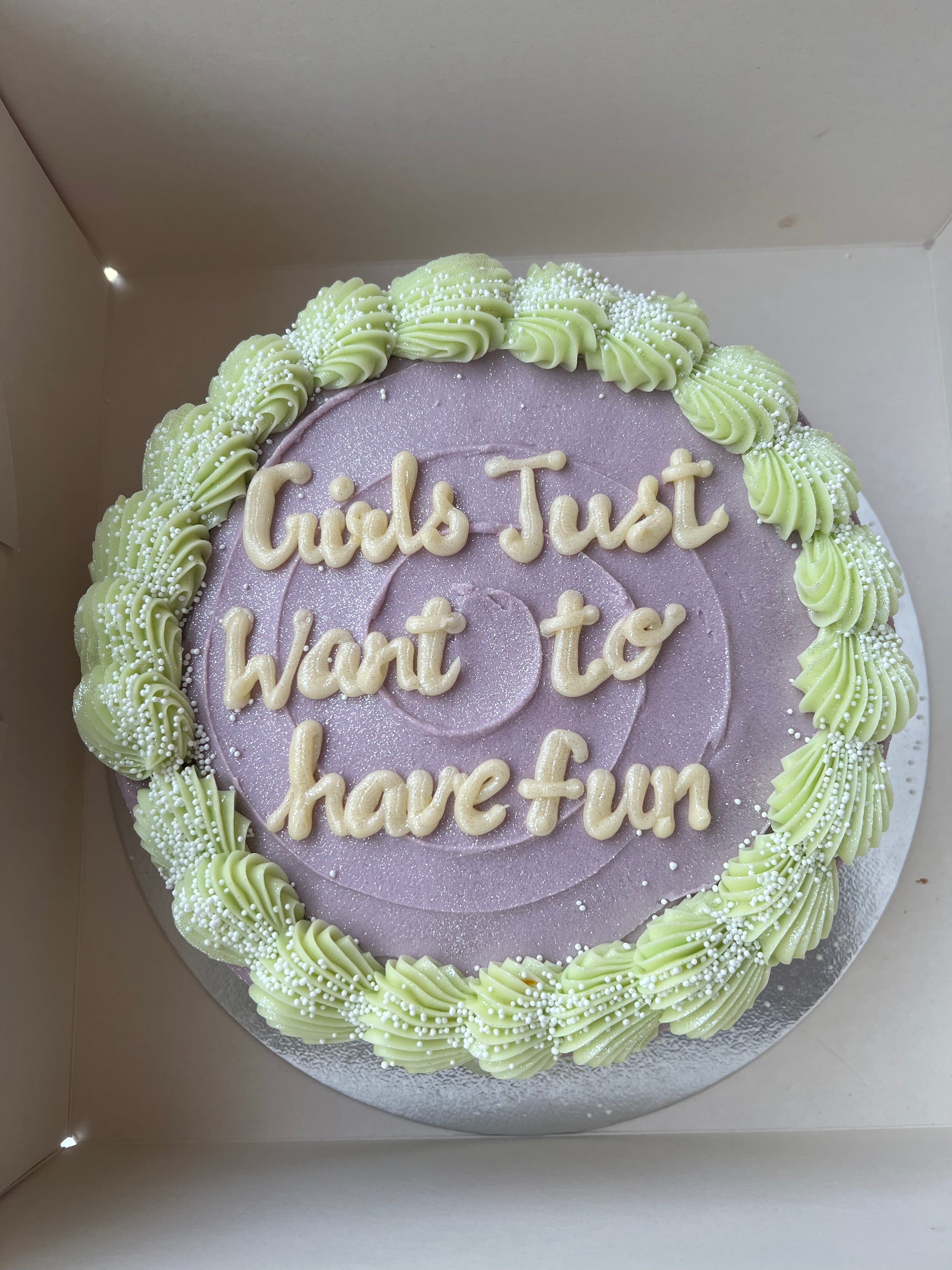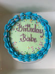 One of our most popular cake styles, this is two layers of sponge covered with the icing of your choice and then decorated with scalloped edging top and bottom and customised with your message! If you want a taller cake, try it with 3 layers of sponge rather than the normal 2!