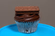 A delicious dark chocolate sponge, filled with chocolate custard and topped with chocolate cream icing. We finish this cupcake with a whole bourbon biscuit on top.