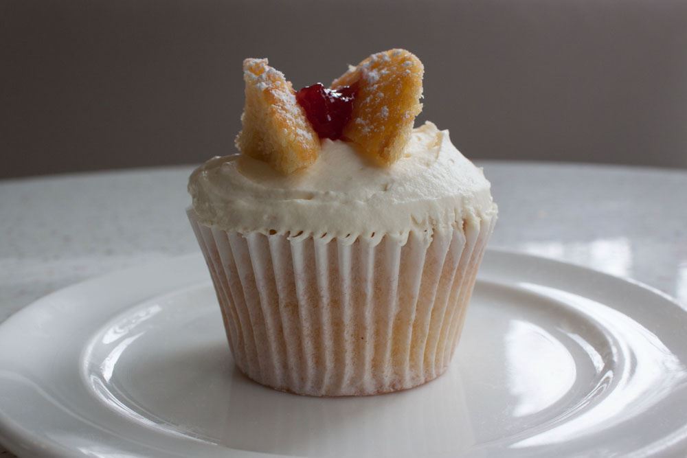 Our butterfly cupcake is a version of our traditonal Victoria Sponge. Our light and fluffy sponge with a jam middle, topped with fresh cream, a dollop of jam and a sponge butterfly.