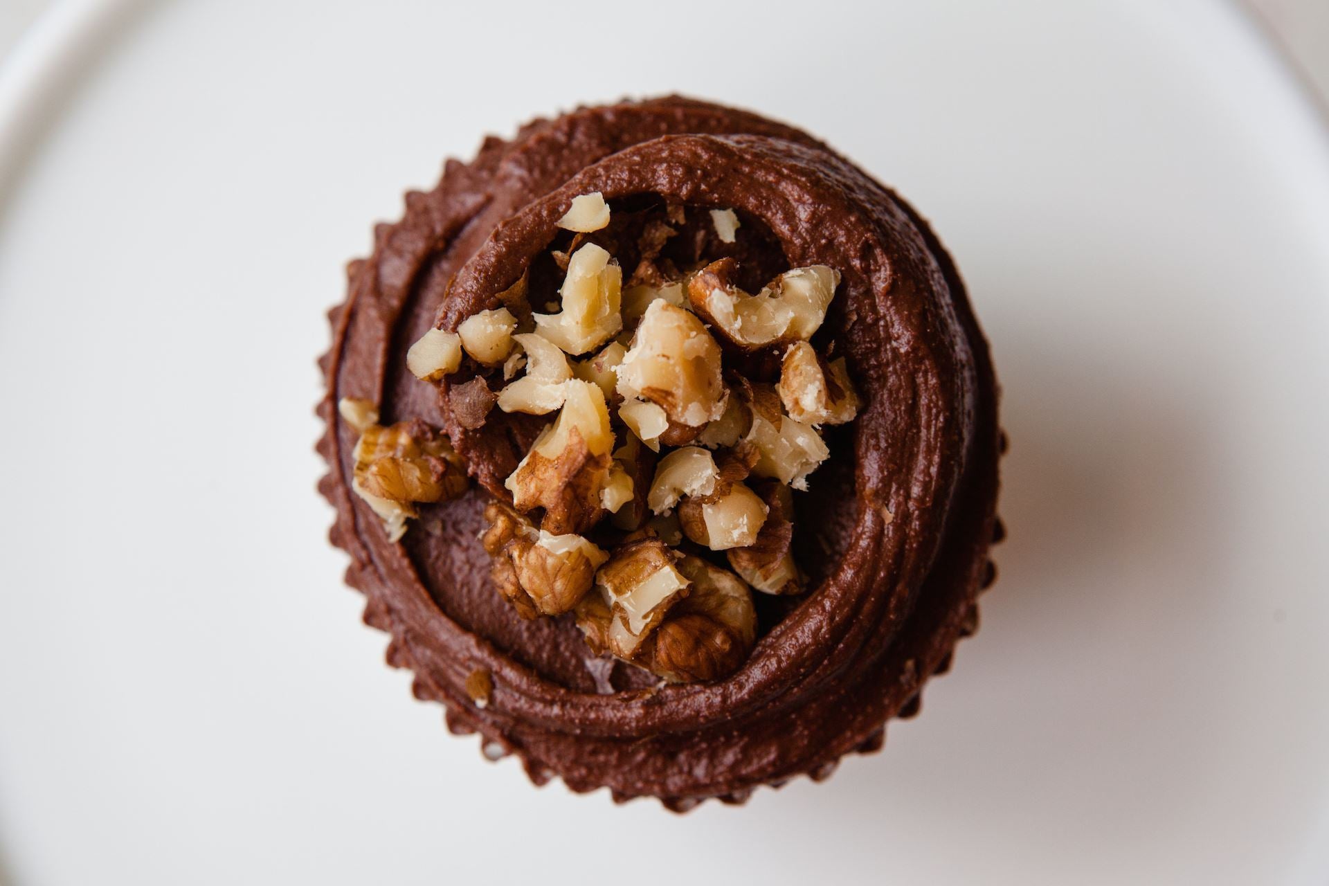 Our moist banana sponge with the addition of dark chocolate pieces. Iced with a dark chocolate buttercream, and topped with crushed walnuts.