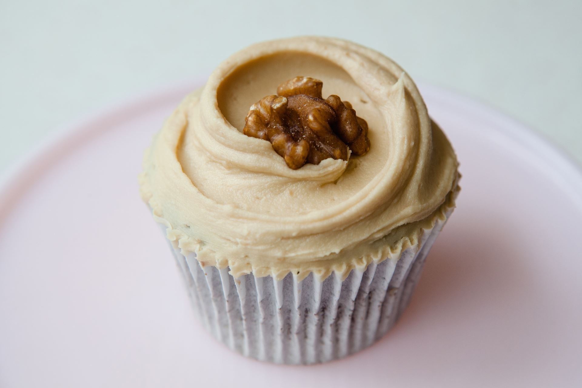 Our moist espresso flavoured sponge is iced with a smooth coffee buttercream and topped with a walnut half.
