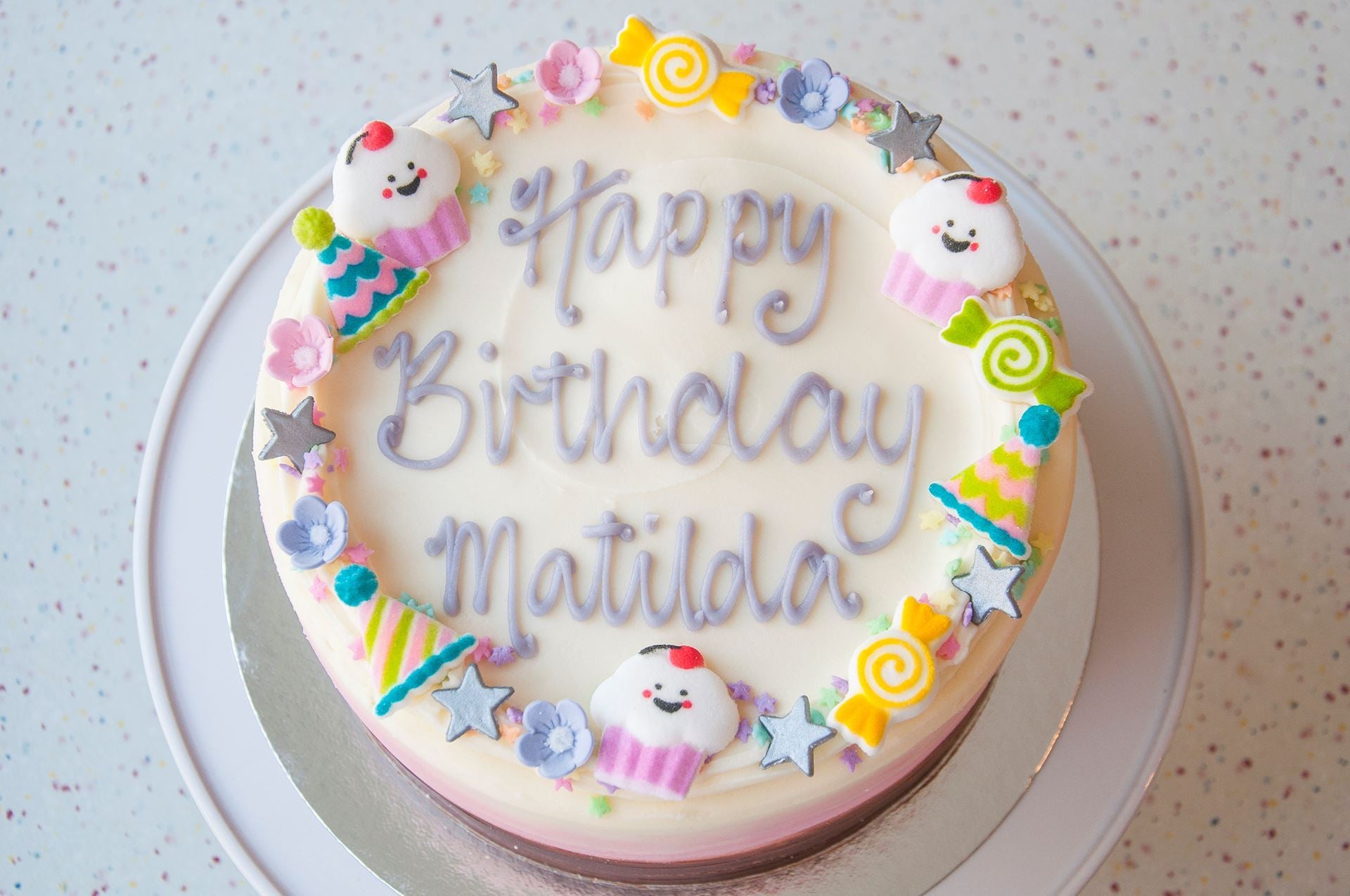 We can personalise the cake with themed decorations, or you can leave it up to our chefs to use a mixture of pretty sugar flowers and sprinkles. We finish the cake off with a message piped in beautiful script and a dusting of glitter! Available to order in store or online now.